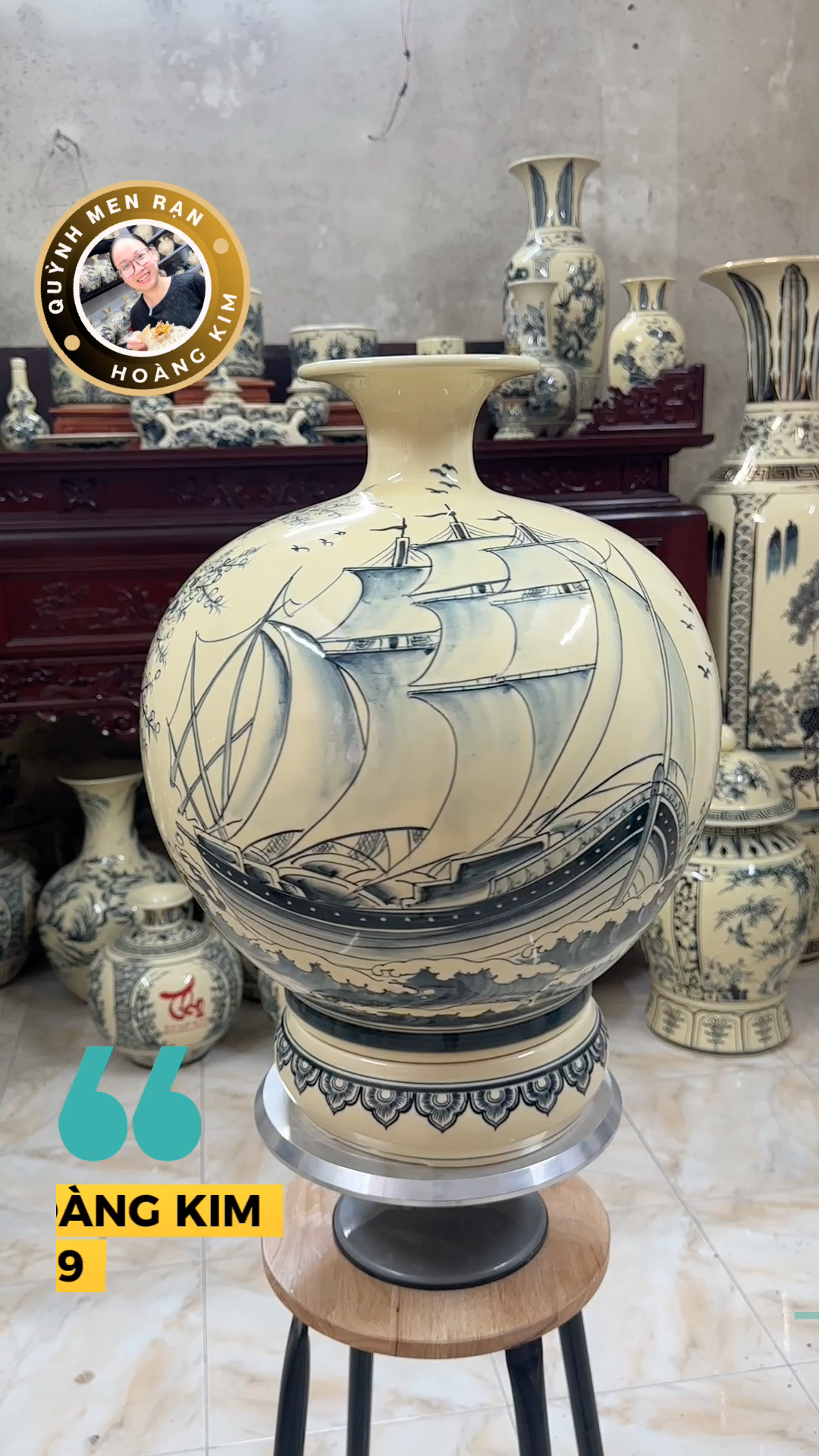 Bình hút lộc vẽ tay Men rạn hoàng kim họa tiết Công thành danh toại – Thuận buồm xuôi gió